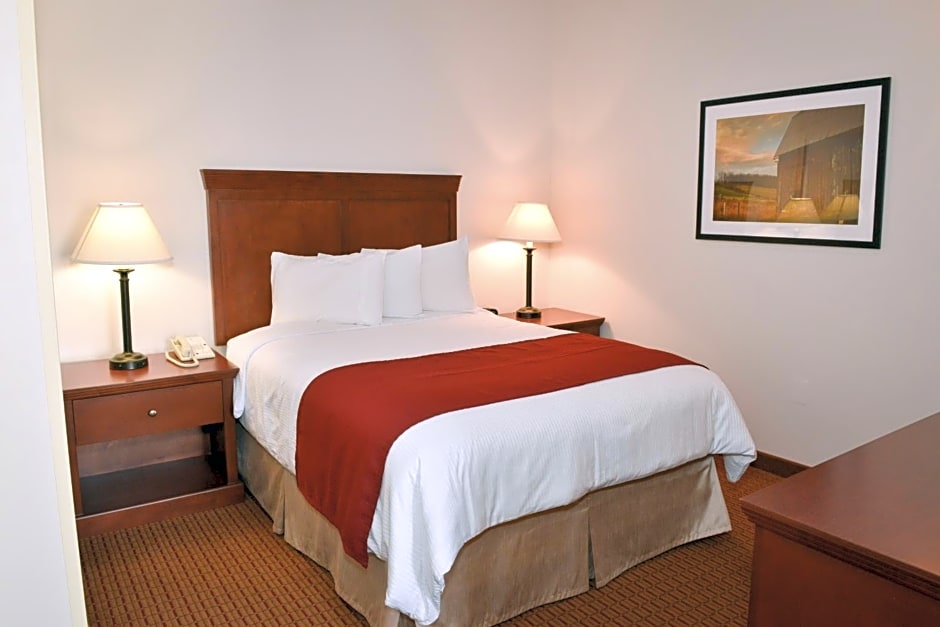 This accessible suite features a seating area, a refrigerator and a dining area. This room is ADA compliant.